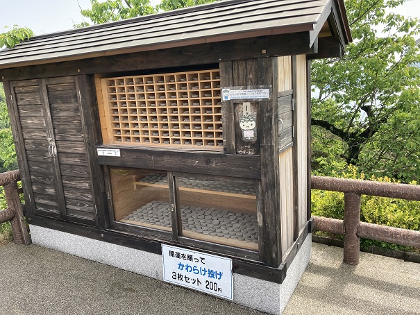 私はそれよりも、「かわらけ投げ」と呼ばれる、泥皿みたいなもの素焼きの皿を投げて、