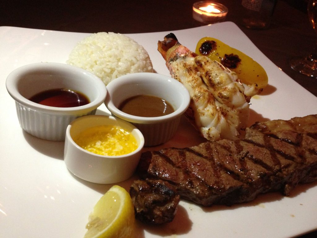 夜は、ロブスターとステーキで、